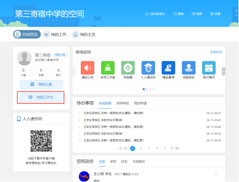 第1步:登录个人空间后,点击“校园工作台”,进入应用列表页面。