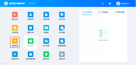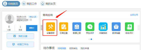 3、登录后点击常用应用—设备报修(全部应用查看所有应用)—设备报修