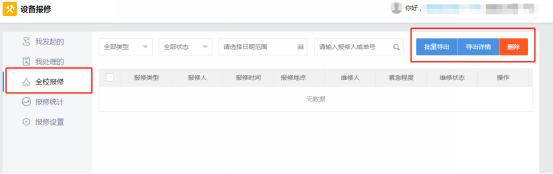 第3步:全校报修可支持导出表格