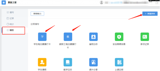 3、点击数据上报-模板-新建表单(各个功能板块)